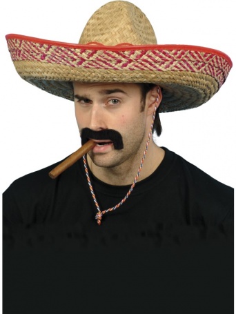Velké sombréro ve světlé barvě s červeným lemováním je nezbytnou pokrývkou hlavy každého mexičana. Vhodný na párty v mexickém stylu nebo v létě k moři.